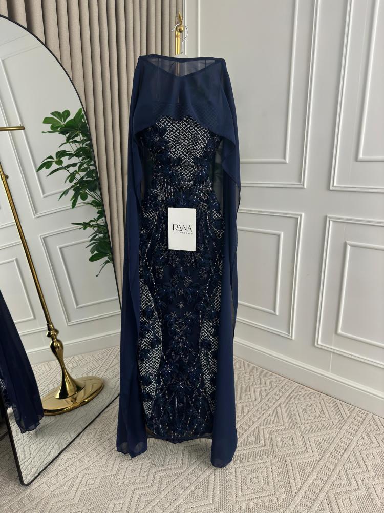 فستان سهره اخضر فاتح تطريز مع شال منفصل