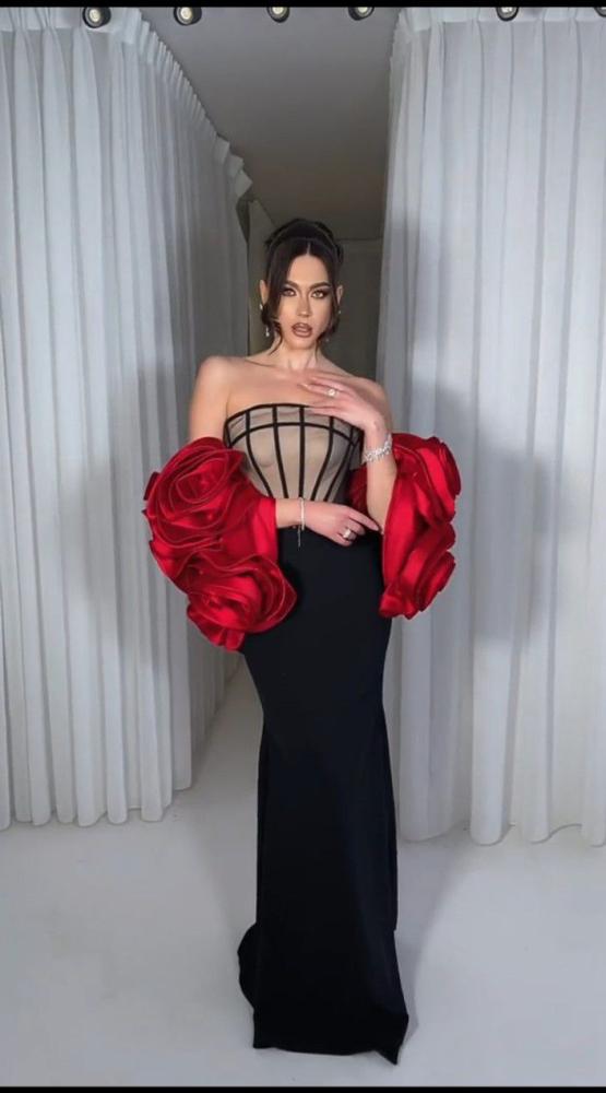 نوع التصميم/ فستان سهره بتصميم انيق عباره عن قطعتين . فستان وجاكيت