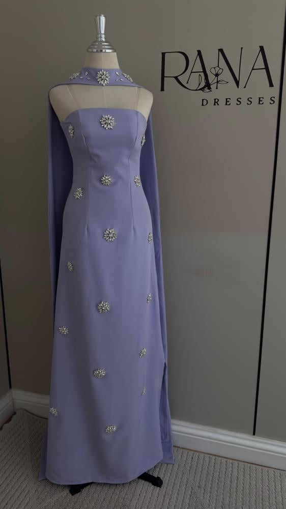 فستان موف قطعتين مزين بكريستال